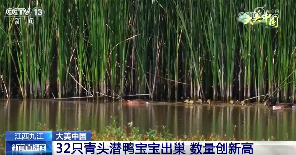 仿佛一幅秀美的山川画卷。32只青头潜鸭宝宝成功成活出巢,翠绿的植被显显露勃勃朝气,本地正在成长中,每年6月是青头潜鸭的繁育季。